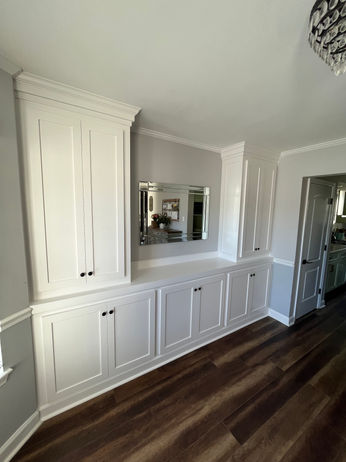 Fully Custom Built-In sideboard with extra countertop space, tons of storage, and a hidden coffee bar.